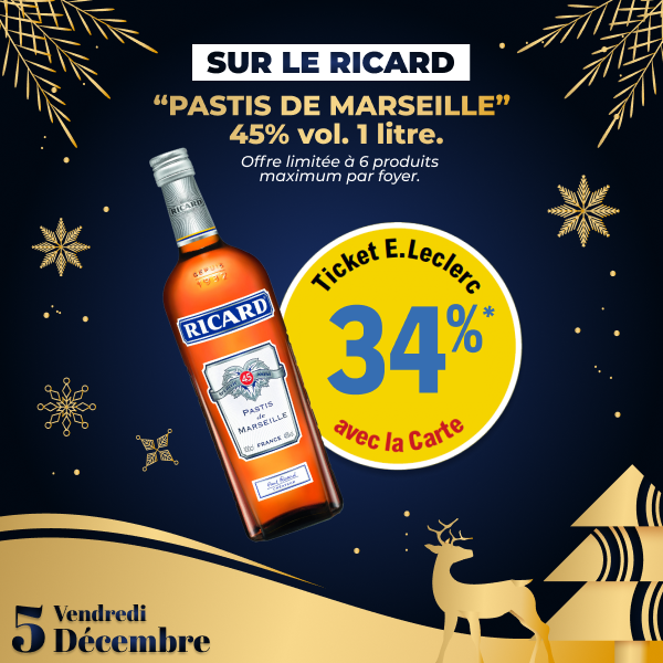 L’abus d’alcool est dangereux pour la santé. À consommer avec modération. *Offre sous forme de remise immédiate, valable à la date indiquée dans votre Centre E.Leclerc Pontchâteau. Reservée aux porteurs de la carte de fidélité, 100% gratuite et disponible immédiatement. Offre non cumulable avec des produits de la même gamme bénéficiant d’une autre promotion. Voir conditions en magasin.