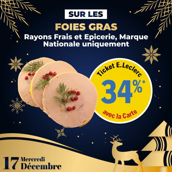 *Offre sous forme de Ticket E.Leclerc, valable à la date indiquée dans votre Centre E.Leclerc Pontchâteau. Reservée aux porteurs de la carte de fidélité, 100% gratuite et disponible immédiatement. Offre non cumulable avec des produits de la même gamme bénéficiant d’une autre promotion. Voir conditions en magasin.